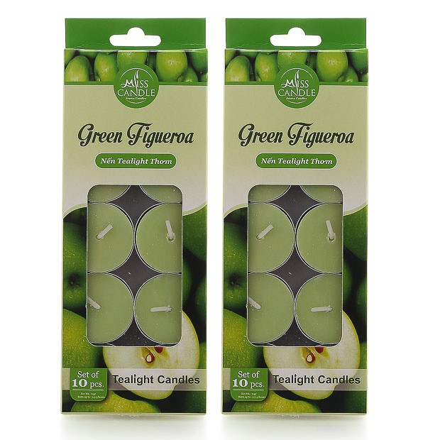 Nhà cửa & Đời sống > Trang trí nhà cửa > Nến & đồ đựng nến || Combo 2 hộp nến tealight thơm Miss Candle FtraMart MIC0147 Green Figueroa (Hương táo xanh)Còn hàng