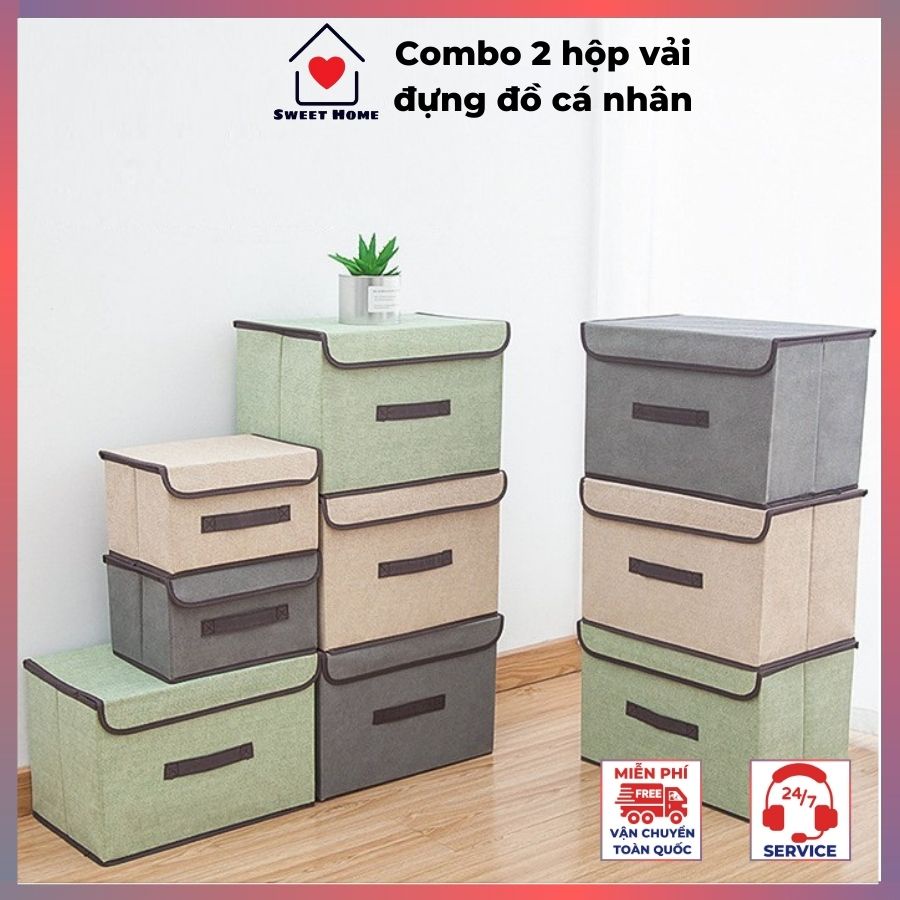 Combo 2 hộp vải ⚡𝐓𝐢𝐞̣̂𝐧 𝐋𝐨̛̣𝐢⚡đựng quần áo, đồ lót - Hộp túi vải gấp gọn đựng đồ đa năng có nắp decor nhà cửa