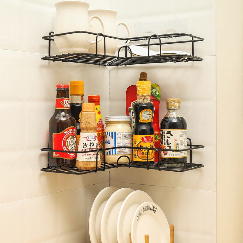 Combo 2 Kệ Góc Dán Tường Thép Sơn Tĩnh Điện, Kệ Góc Đựng Đồ Nhà Tắm Nhà Bếp Thông Minh