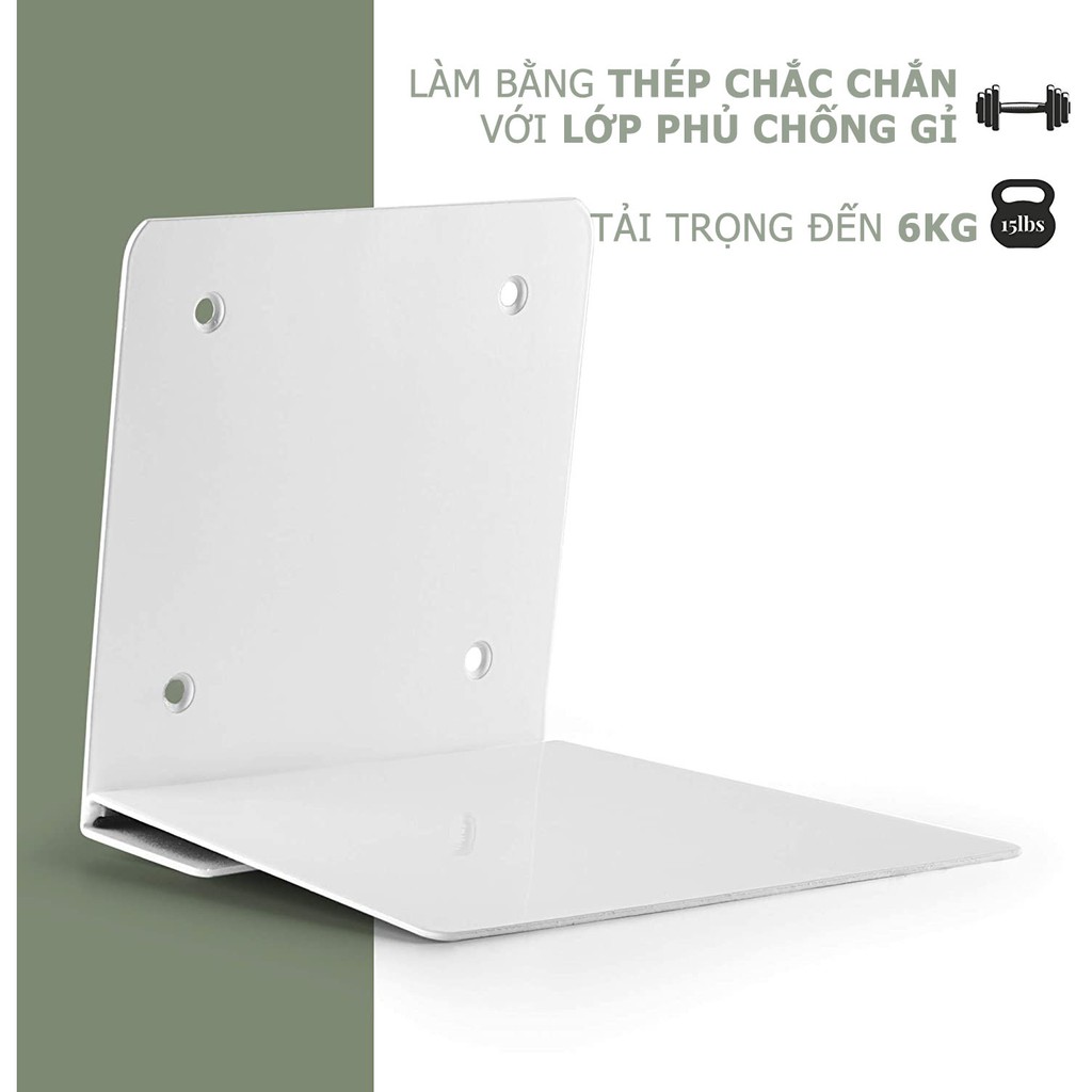 Combo 2 kệ sách nổi vô hình, giá sách kim loại trang trí tường - Màu trắng