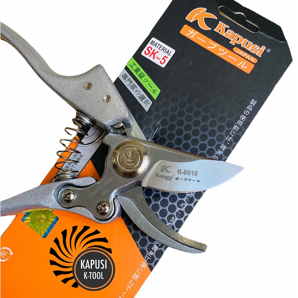-Kéo tỉa lá, tỉa dăm, cắt chi dăm thép Nhật Bản hãng Kapusi SK5 chiều dài 18cm