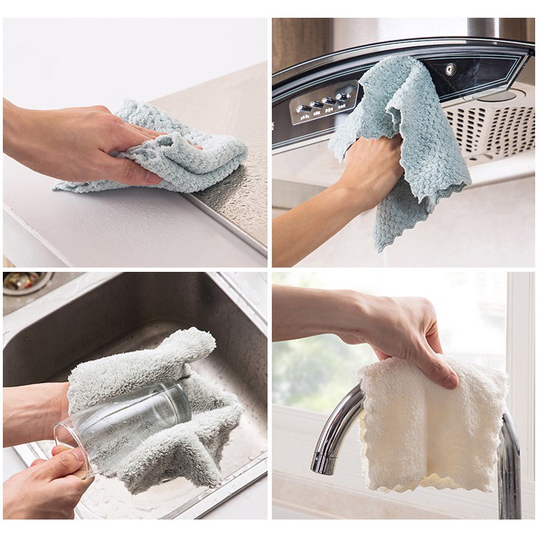 Combo 2 Khăn lau bàn ghế chén dĩa sợi vải mịn siêu thấm nước 22x14cm