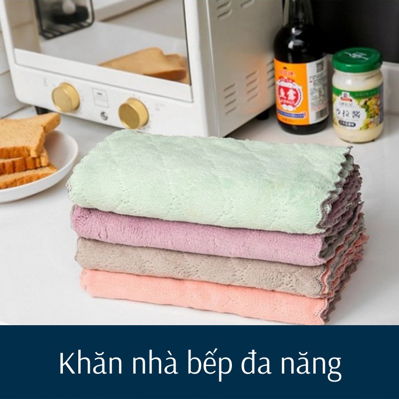 Combo 2 Khăn lau đa năng bếp chén dĩa bàn ghế thấm nước và chống dính dầu mỡ tốt 14 * 25 cm
