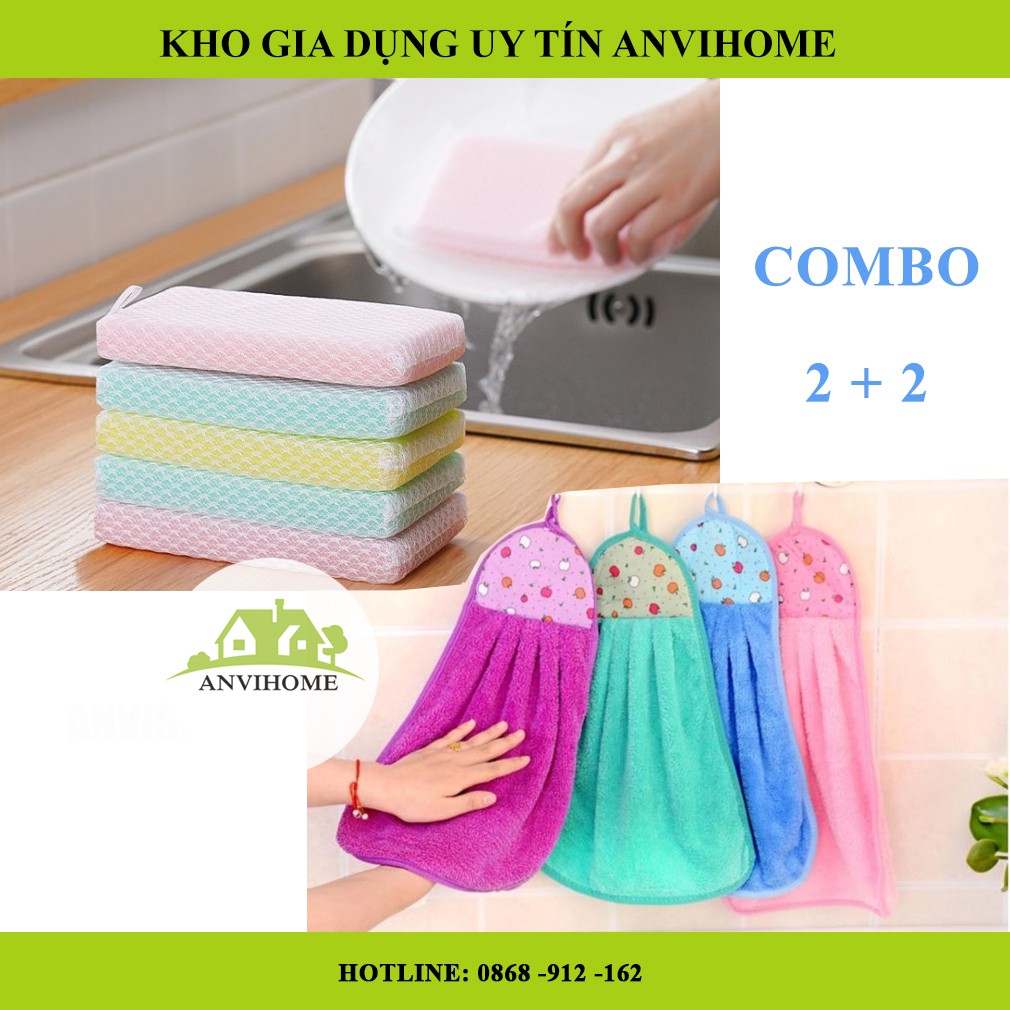 Combo 2 khăn lau đa năng và 02 mút rửa bát xuất nhật