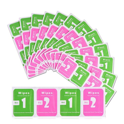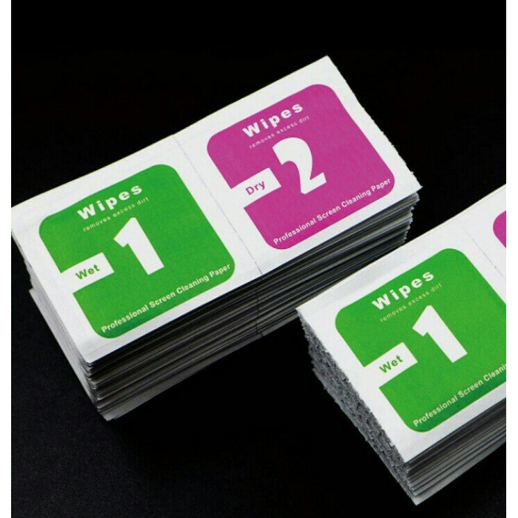- Giấy lau màn hình điện thoại, ipad, máy tính bảng để dán cường lực , lau mặt kính mắt....gồm:1 tấm ướt ( số 1) lau trước