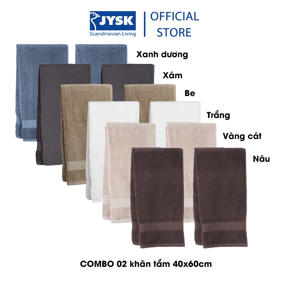 Nhà cửa & Đời sống > Đồ dùng phòng tắm > Khăn mặt, khăn tắm, áo choàng tắm > Khăn tắm || Combo 2 khăn tắm cotton | JYSK Karlstad | 40x60cm nhiều màuCòn hàng