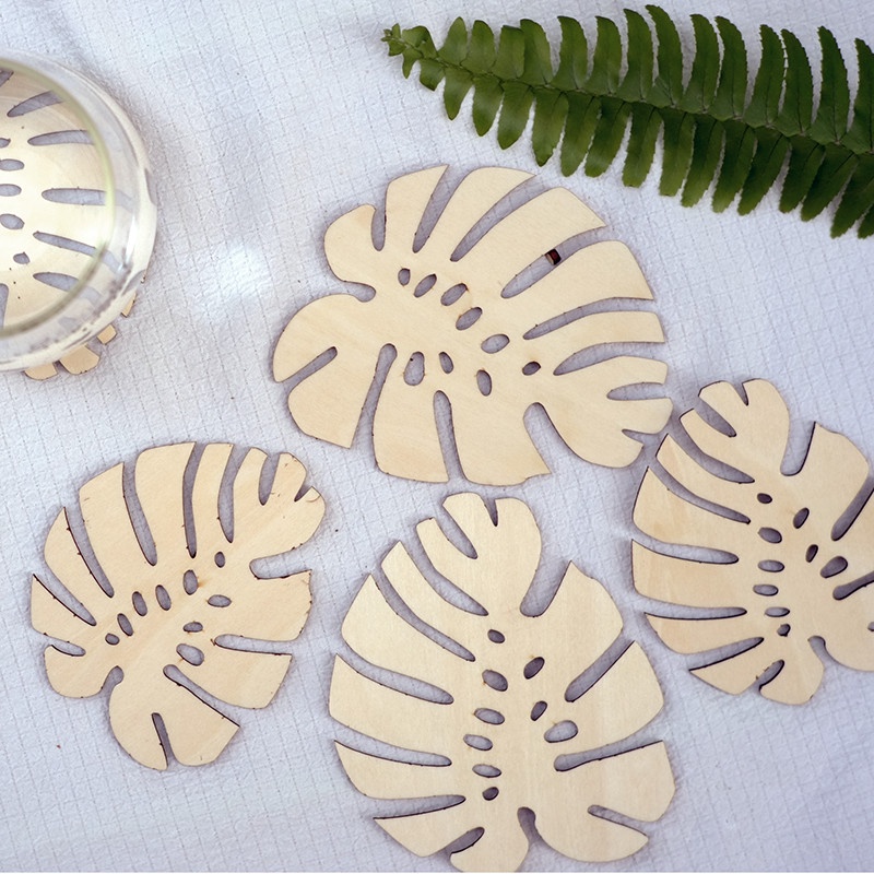 Nhà cửa & Đời sống > Bộ đồ bàn ăn > Khay, tấm lót bàn ăn || Combo 2 Lót li, lót cốc lá Monstera gỗ tự nhiên 3mmCòn hàng