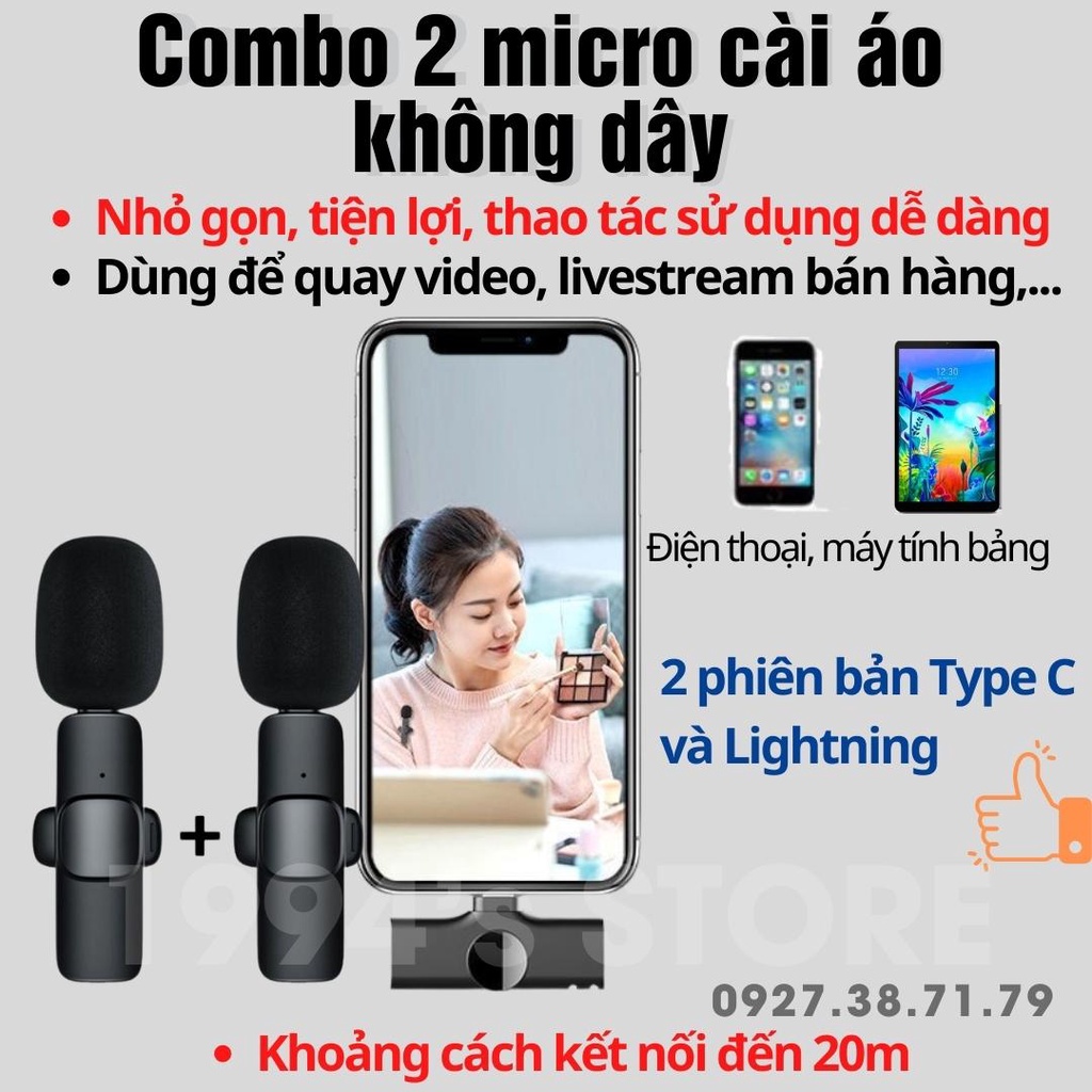 Thiết Bị Âm Thanh > Micro thu âm || Combo 2 micro cài áo không dây - kết nối 2.4G xa 20m - Dùng để livestream, quay vlog, Tiktok, dạy học Online, bán hàngCòn hàng