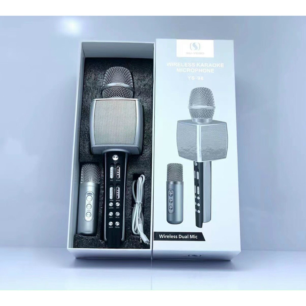Thiết Bị Âm Thanh > Micro thu âm || Combo 2 Micro Karaoke Bluetooth YS98 Song ca kèm loa không dây giả giọng nói -Kèm micro song ca - Hàng chính bh 12 thángCòn hàng
