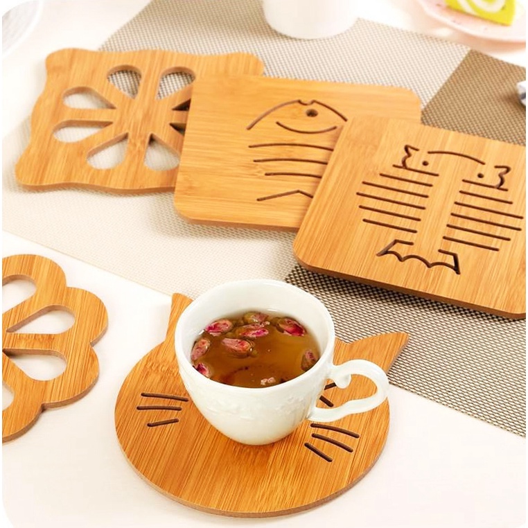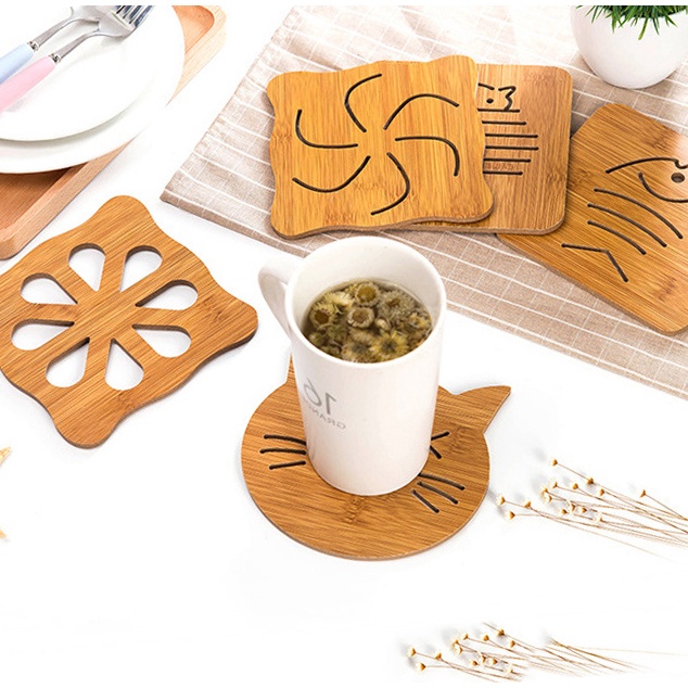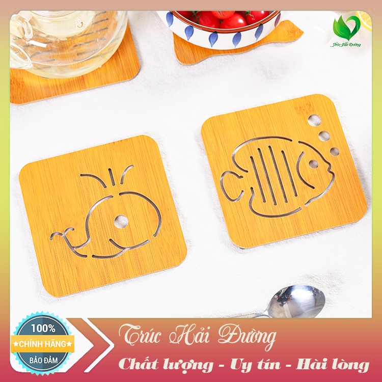 Miếng Lót Ly, Đế Lót Cốc – Kích thước: 9 Cm x 9 Cm x 0.5 Cm vốn là vật dụng không thể thiếu trong mọi không gian như phòng khách, bàn làm việc, bàn uống nước, trà, cafe, nhà bếp, dã ngoại,... Đế lót ly bằng gỗ tiện dụng bền chắc cho Thời gian sử dụng lâu dài. Miếng lót giúp bạn không bị bỏng tay khi bưng cốc lên bàn, tránh tràn nước gây mất thẩm mỹ.Với kích thước vuông, gọn, được khắc các họa tiết ngộ nghĩnh đẹp mắt, đế lót ly cốc bằng gỗ cũng là 1 vật dụng trang trí giúp cho bàn ăn, bàn làm việc của bạn thêm sinh động và lạ mắt.