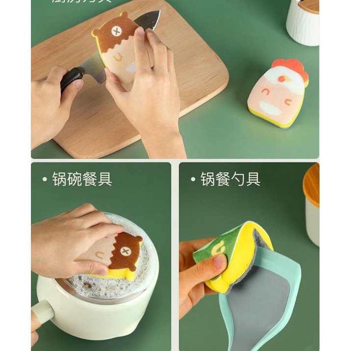 Combo 2 Miếng rửa chén tạo bọt chống xước hình thú