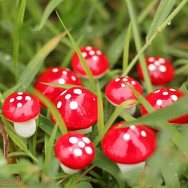 Combo 2 cây nấm dùng trang trí tiểu cảnh, rất xinh và đáng yêu. Có đuôi cắm xuống chắc chắn. Giá tính cho 1 set 2 câyGiá D2T