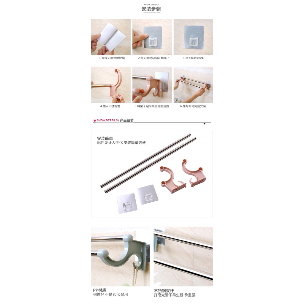 • Bộ giá treo khăn bằng inox tiện dụng để treo khăn mặt, khăn tắm