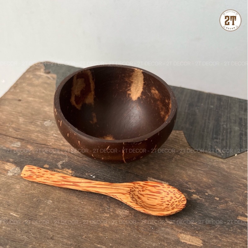 Nhà cửa & Đời sống > Bộ đồ bàn ăn > Tô || Combo 2 món gáo dừa mini + muỗng ( thìa) gỗ dừa 12cm, dùng đựng kem, ăn chè , decor , trộn mặt nạCòn hàng