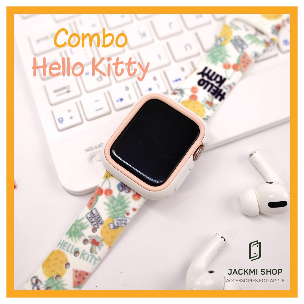 [COMBO 2 MÓN HELLO KITTY] DÂY SILICON HỌA TIẾT CHO APPLE WATCH + ỐP VIỀN RHINOSHIELD CHO APPLE WATCH