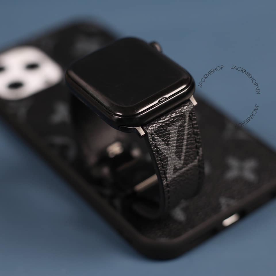Giới thiệu [COMBO 2 MÓN LV CHỮ ĐEN] DÂY DA LV HỌA TIẾT CHỮ CHO APPLE WATCH + ỐP LƯNG IPHONE (DÂY DA BẢO HÀNH 1 NĂM)