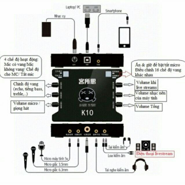 Giới thiệu Combo 2 món sound thu âm k10 và dây livestream ma2