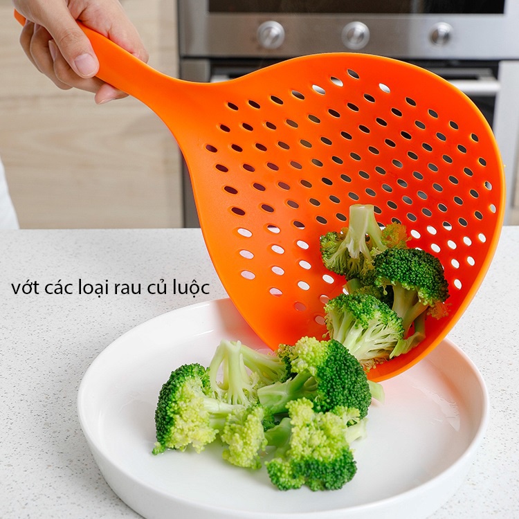 -Muôi vớt đồ ăn là sản phẩm được thiết kế chuyên dụng để vớt các loại đồ ăn như: + Các món luộc: rau, củ, sủi cảo, thịt, cá,... + Cho đến các món ăn dạng sợi như: miến, mì, bún, phở,...-Sản phẩm được làm từ chất liệu nhựa