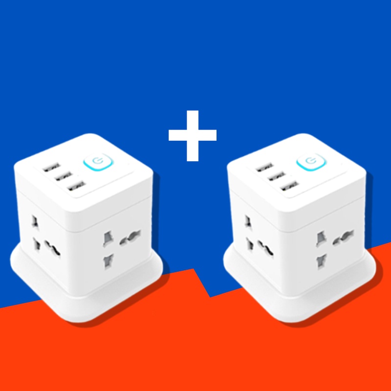 Combo 2 Ổ Cắm Điện Đa Năng CubeZ Shoptida 3 Cổng USB sạc tối đa tổng 12W và 4 Ổ Điện chịu tải 2500W Dây nối dài 1.6m----------