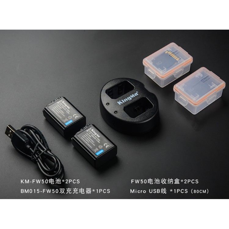 Combo 2 pin + 1 dock sạc đôi chính hãng KingMa KM FW50 dùng cho máy ảnh Sony A7m2/A7r2/A7/A600/A5000/A5100/A6300 ...