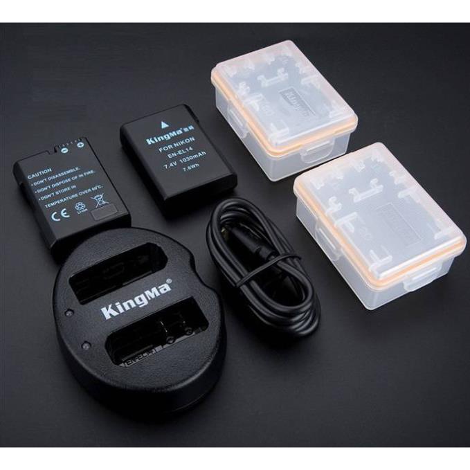 Cameras & Flycam > Phụ kiện máy ảnh > Đế pin || [Mã 44ELSALE2 giảm 7% đơn 300K] Combo 2 pin 1 sạc đôi Kingma EN-EL14Còn hàng