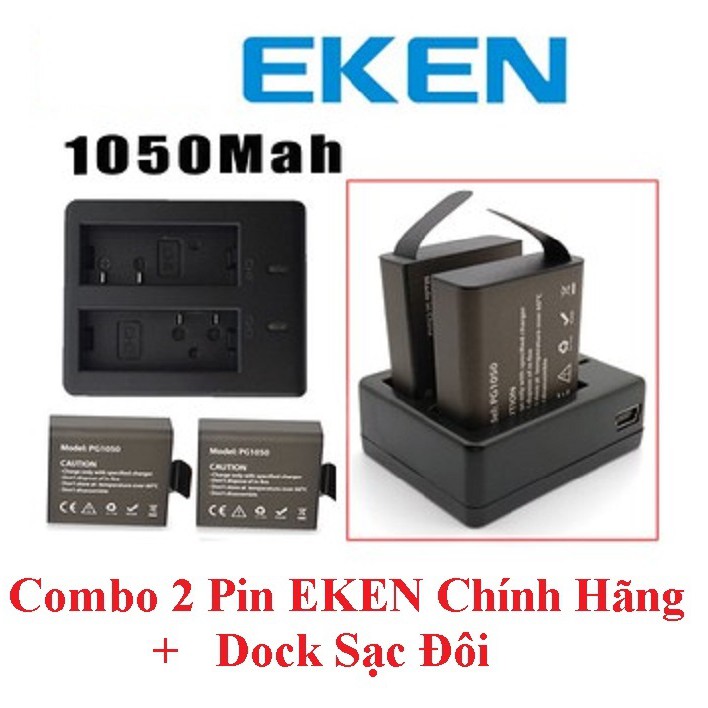 Giới thiệu ✔️ Combo 2 Pin EKEN Chính Hãng + Dock Sạc Đôi