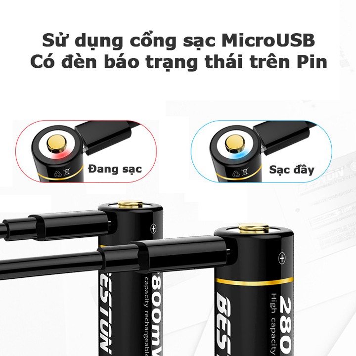 Cameras & Flycam > Phụ kiện máy ảnh > Bộ sạc pin || Combo 2 Pin sạc 1.5V AA AAA pin lithium Beston cổng sạc microUSB trên thân pin 800mwh 1000mwh 2800mwh 3500mwhCòn hàng