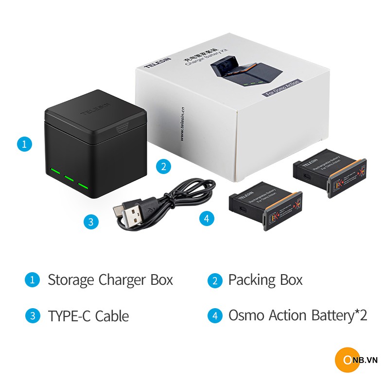 Combo 2 pin Telesin Osmo Action và hộp sạc