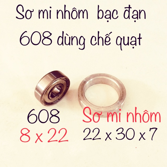 SẢN PHẨM DÙNG THAY THẾ HOẶC SỬA CHỮA CHO TẤT CẢ CÁC LOẠI QUẠT B3 B4 B5 CÓ CỐT TRỤC 8mm -2 SẢN PHẨM BẠC 608 & SƠ MI NHÔM DÙNG ĐỂ CHẾ BẠC THAU SANG BẠC ĐẠN - KỸ THUẬT MỚI NHẤT HIỆN NAY LÀM TĂNG CÔNG SUẤT QUẠT - TIẾT KIỆM ĐIỆN - SIÊU BỀNGiá COMBO