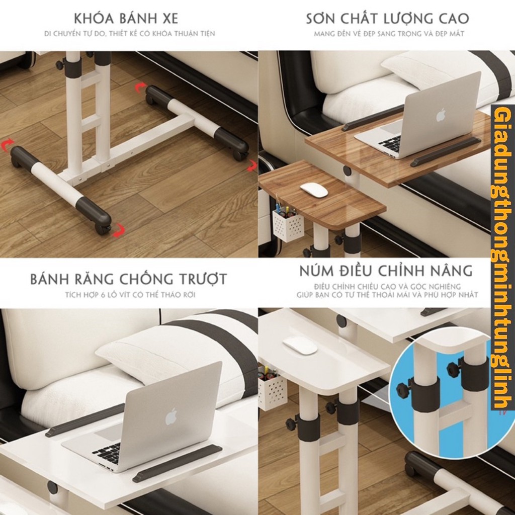 Nhà cửa & Đời sống > Nội thất > Bàn || (Combo 2 sản phẩm) Bàn Laptop di động thông minh và Kệ điện thoại - Mặt bàn điểu chỉnh độ nghiêng kèm giỏ bút có bánh xeCòn hàng