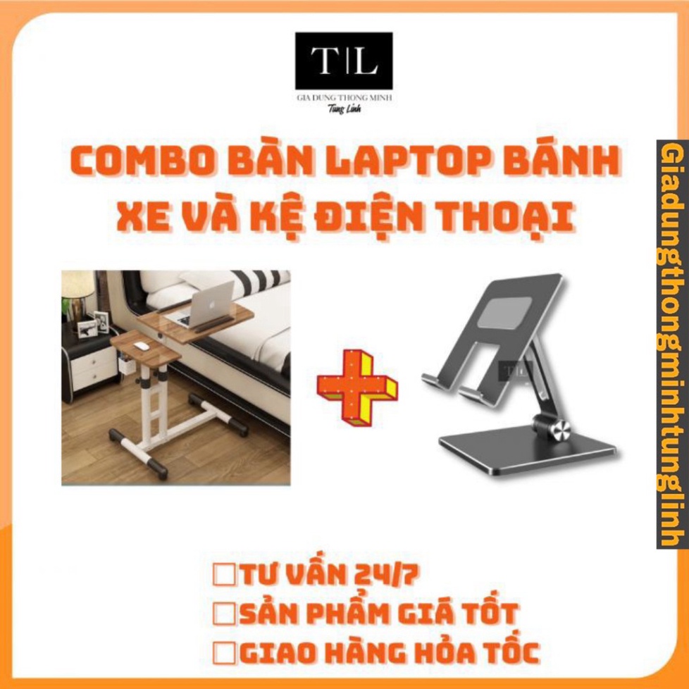 - Tên hàng hóa: (Combo 2 sản phẩm) Bàn Laptop di động thông minh và Kệ điện thoại - Mặt bàn điểu chỉnh độ nghiêng kèm giỏ bút có bánh xe