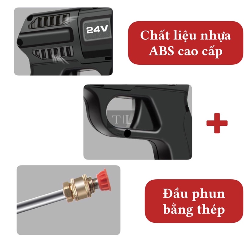 💥Trọn bộ sản phẩm: 5m dây, 1 sạc, pin 24V, thanh nối dài, 2 đầu phun