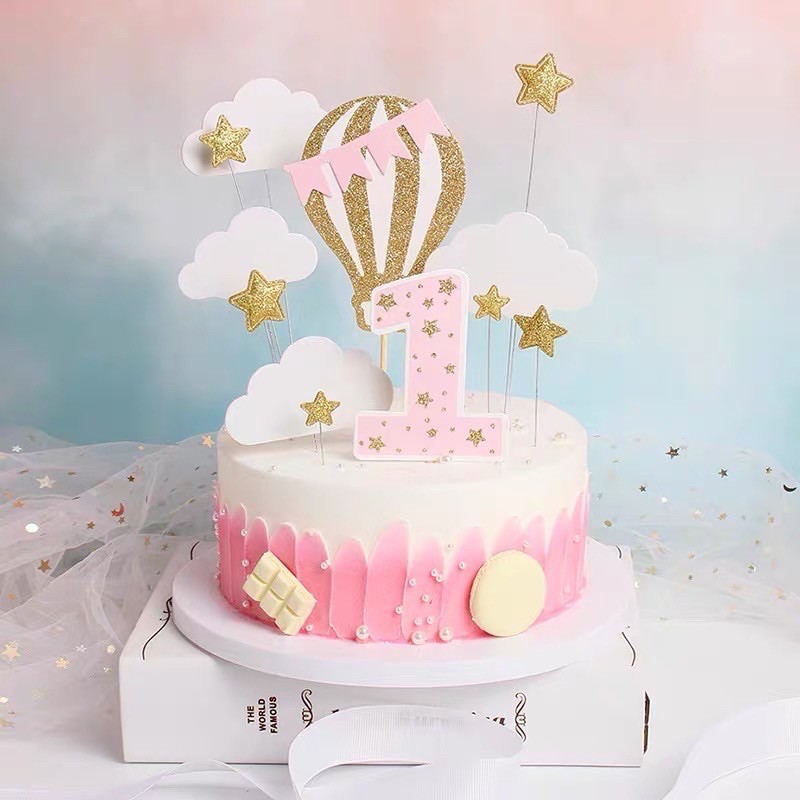 Combo 2 set cắm khinh khí cầu trang trí bánh kem
