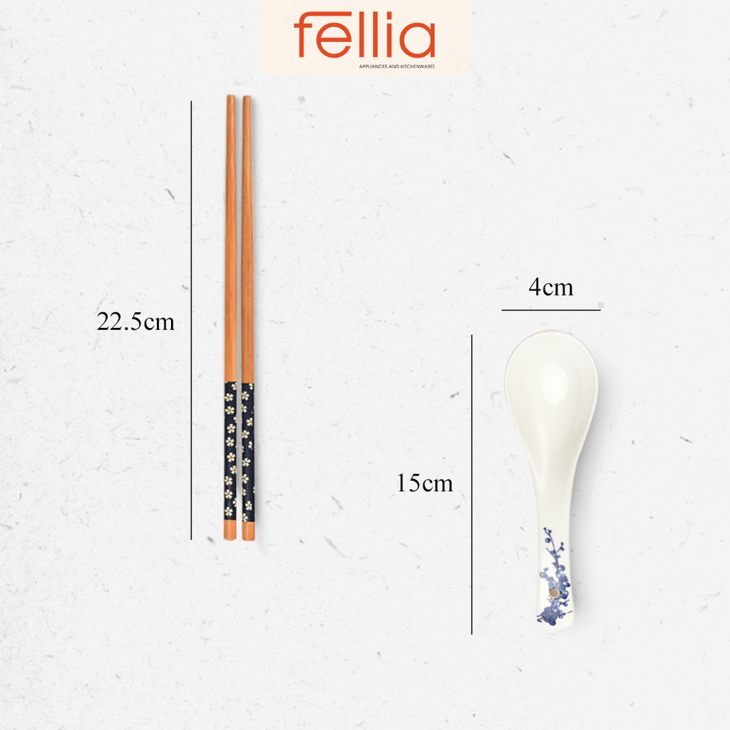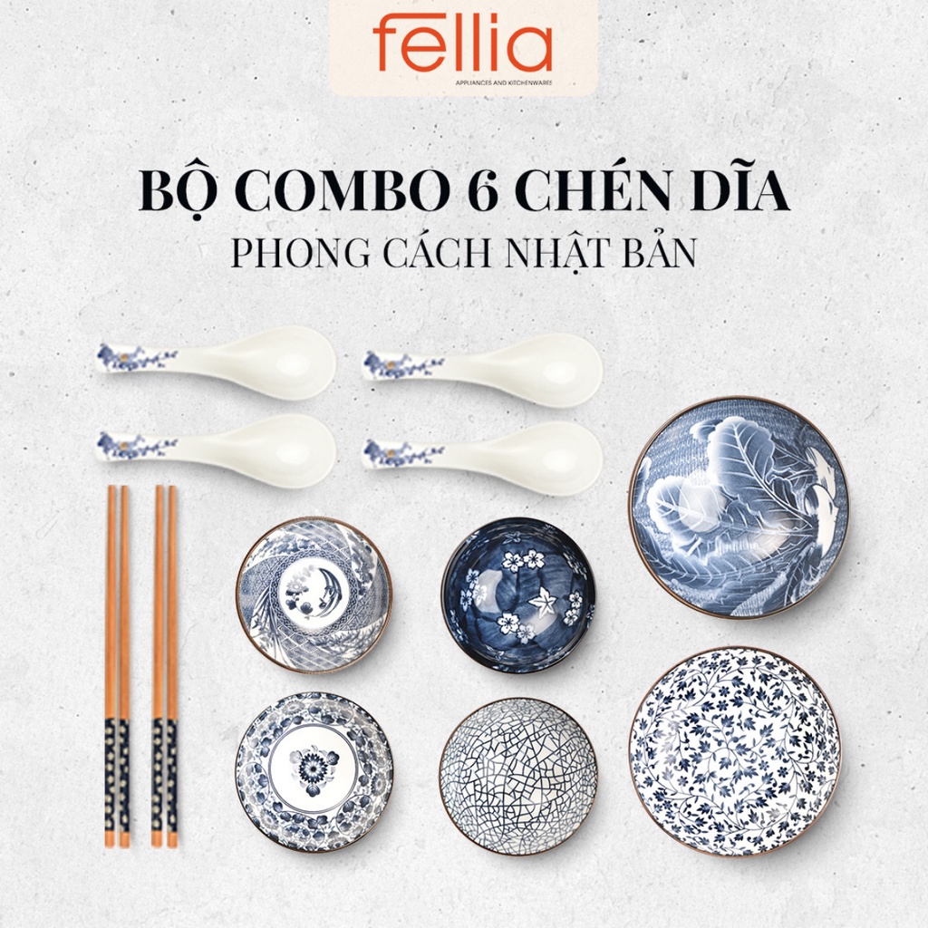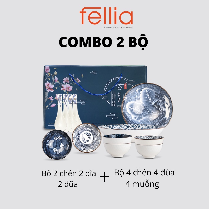 Combo 2 set Fellia tổng sản phẩm gồm 6 chén cơm 4 muỗng 2 dĩa sứ 6 đũa