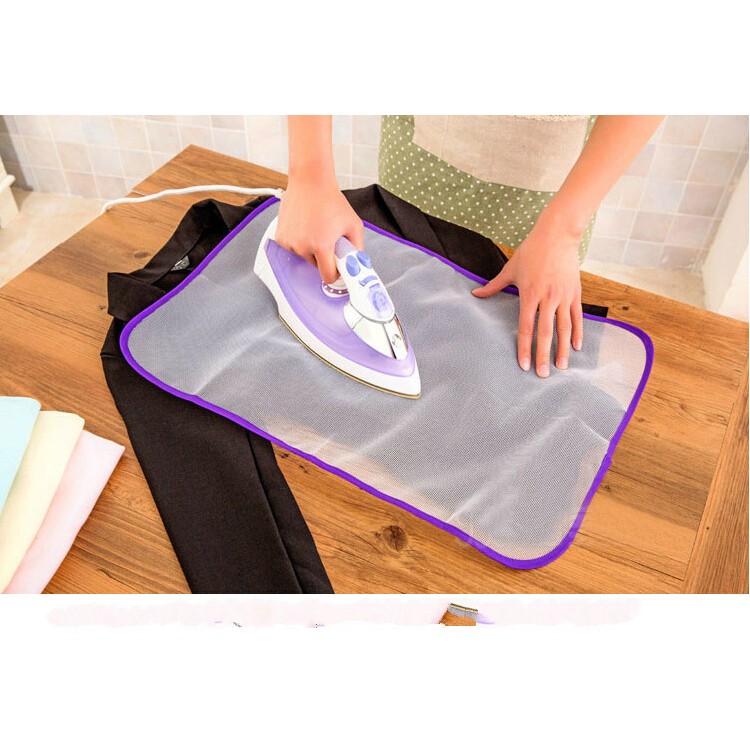 - Lưới ủi cách nhiệt giúp tránh nhiệt độ bàn ủi tiếp xúc trực tiếp với bề mặt các chất liệu vải.