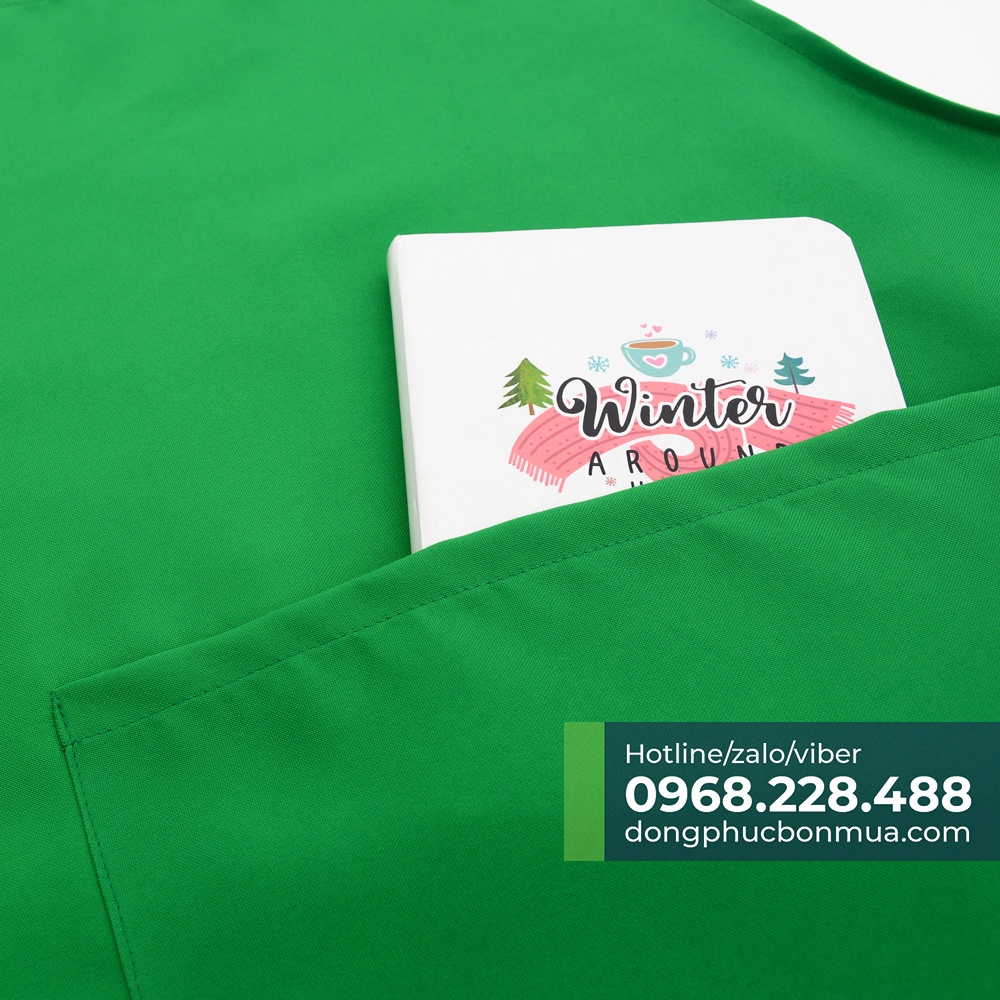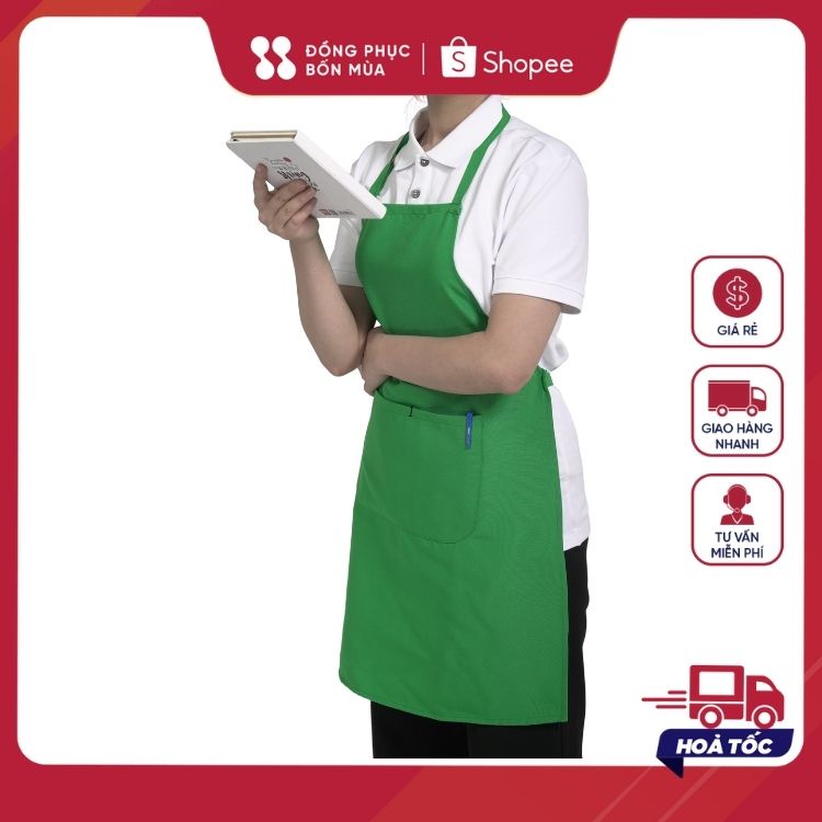 ✔️ Quy cách: Tạp dề yếm, có nút tăng giảm độ dài, có túi tiện dụng để đựng sổ ghi chép, sổ order, điện thoại, ipad…