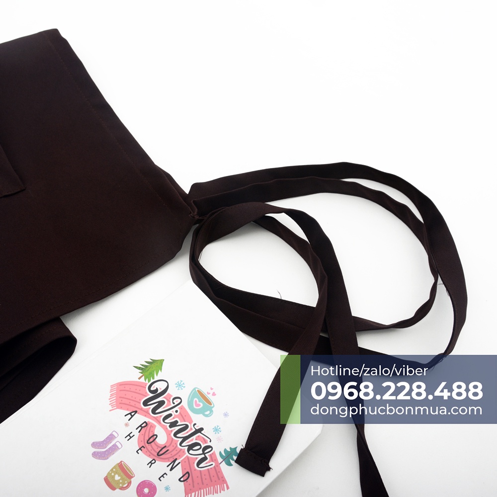 ✔️ Quy cách: Tạp dề ngắn nửa người, có 2 dây cột sau, có túi đựng phía trước tiện dụng để đựng sổ ghi chép, sổ order, điện thoại, ipad…