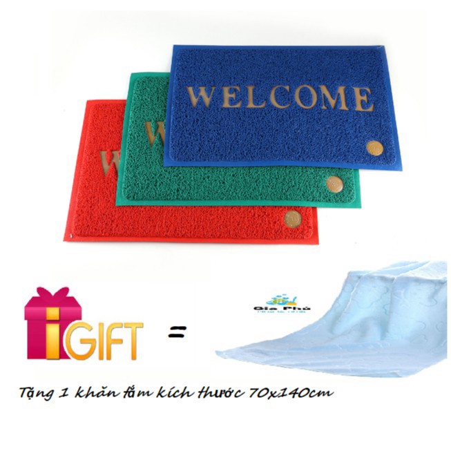 Nhà cửa & Đời sống > Trang trí nhà cửa > Thảm chùi chân || Combo 2 thảm nhựa chống trơn trượt cao cấp Welcome Gia Phú 40x60cm ( giao màu ngẫu nhiên ) + Tặng 1 khăn tắm 70x140cmCòn hàng