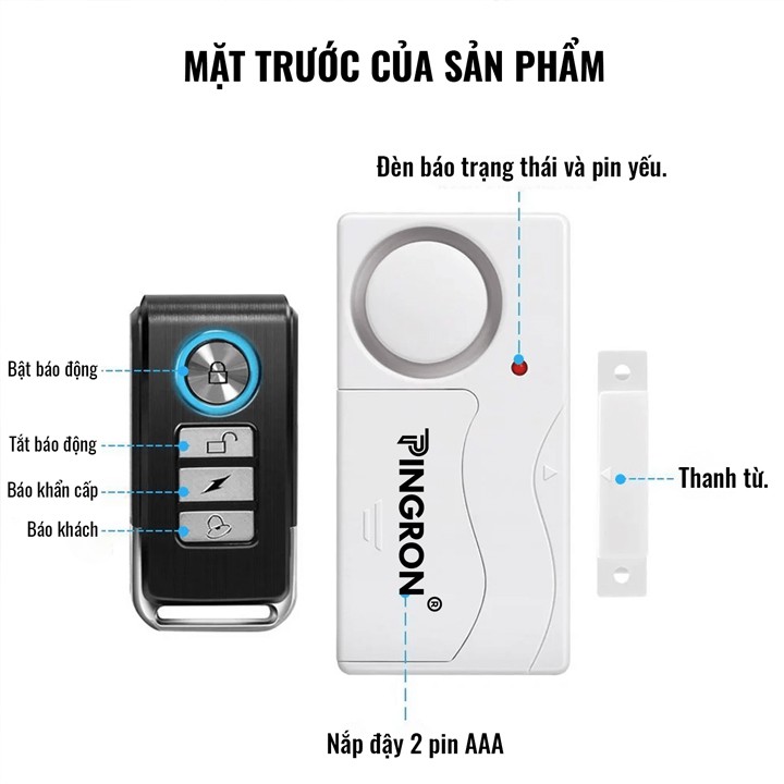 THIẾT BỊ CHỐNG TRỘM GẮN Ở CỬA NHÀ ĐIỀU KHIỂN TỪ XA PINGRON PR-C03CHỨC NĂNG: