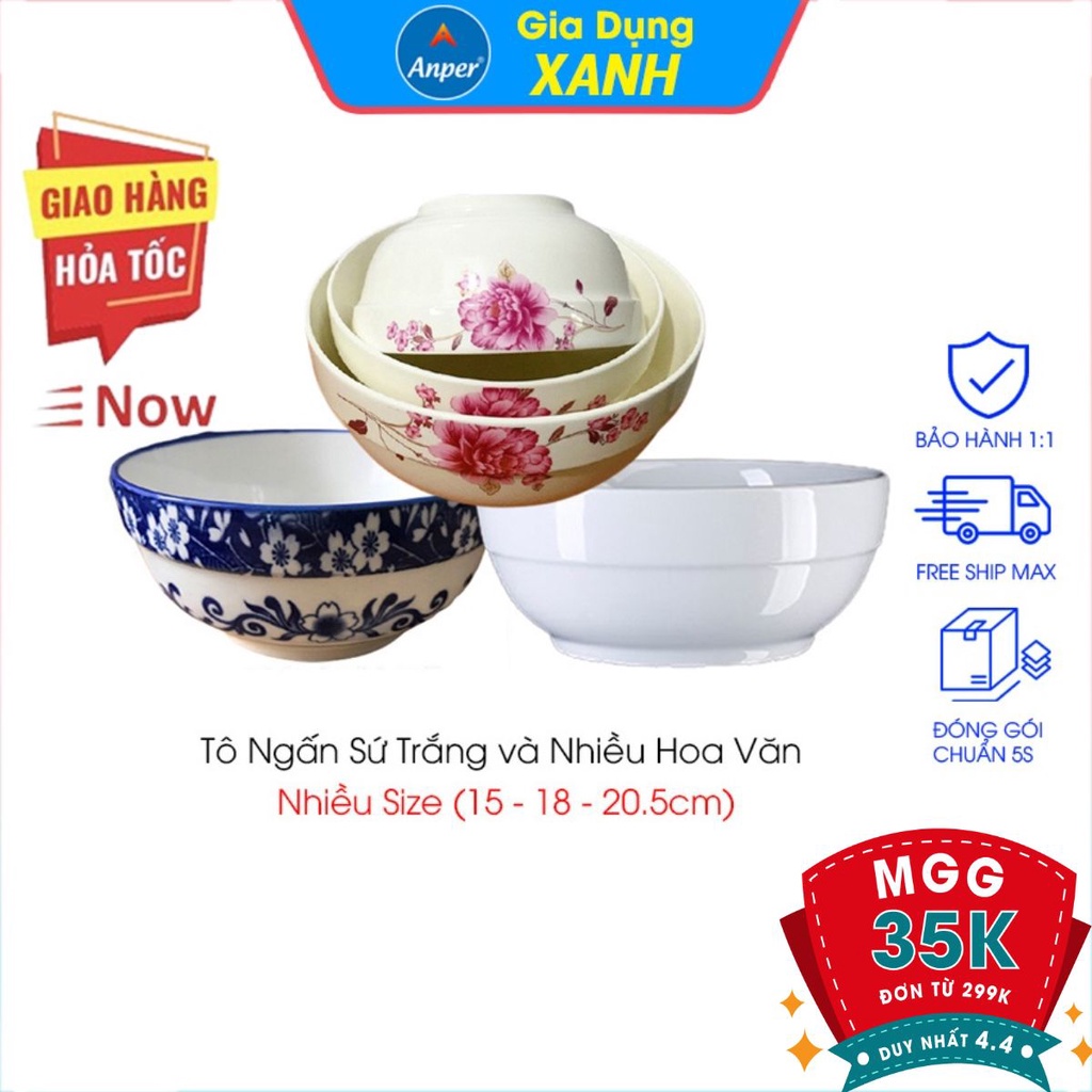 Combo 2 tô sứ 3 bát sứ ANPER ngấn dày 15cm18cm20cm ăn cơm ăn mì ăn phở chén dĩa dễ thương