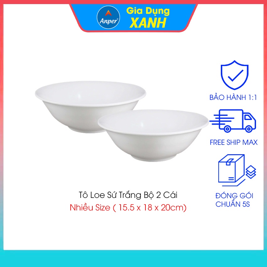 Nhà cửa & Đời sống > Bộ đồ bàn ăn > Tô || Combo 2 tô sứ 3 bát sứ ANPER dày size 15 18 20 cm ăn cơm gia đình và nhà hàng sang trọng an toànCòn hàng