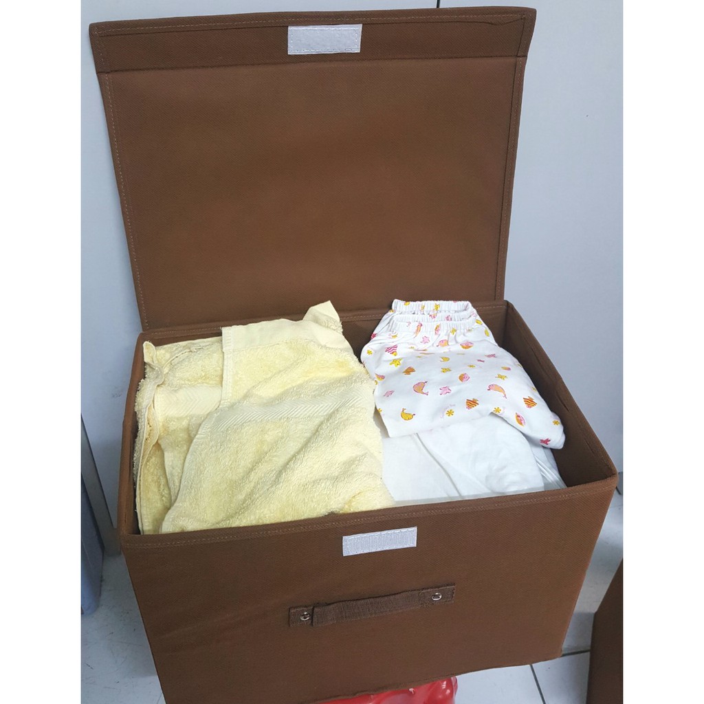- Combo 2 tủ vải có nắp liền mẫu mới năm 2019, giúp bạn đựng được nhiều đồ gia dụng hay quần áo cho không gian nhà bạn luôn gọn gàng, ngăn nắp.- Thiết kế dạng hộp, có tay xách và nắp đậy chắc chắn và có thể xếp gọn khi không sử dụng giúp tiết kiệm diện tích.