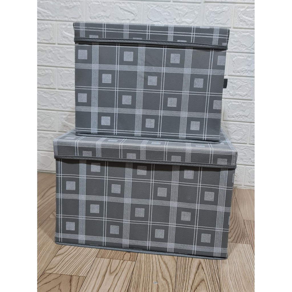 - Combo 2 hộp vải nắp dời giúp tiết kiệm diện tích là bộ sản phẩm có tính năng vượt trội, rất tiện lợi cho việc sắp xếp nhà cửa của bạn gọn gàng, ngăn nắp.- Với thiết kế dạng hộp, tay xách thuận tiện, nắp đậy chắc chắn bảo quản tốt đồ bên trong, có thể đựng được nhiều vật dụng như quần áo, chăn drap, đồ chơi trẻ em, sách báo ...