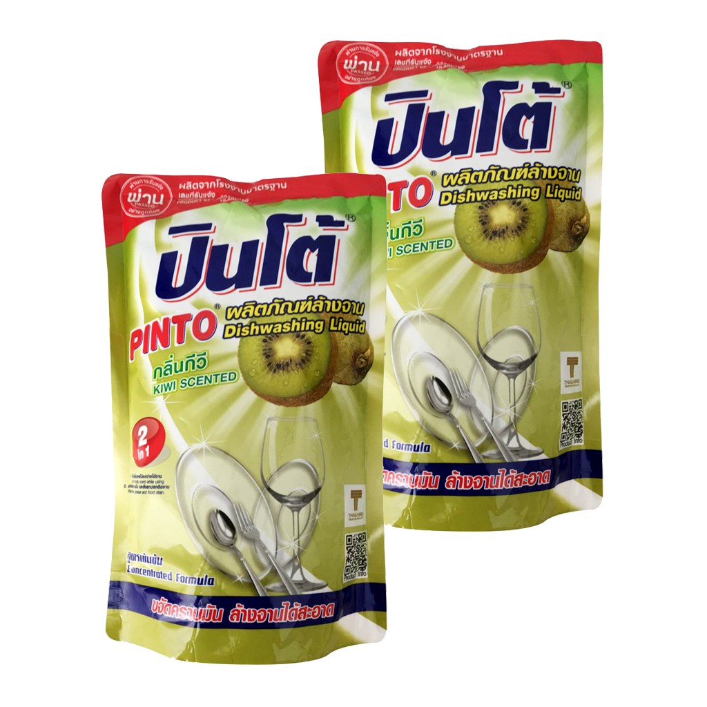 Giới thiệu COMBO 2 túi nước rửa chén đậm đặc mùi chanh/kiwi PINTO Thái Lan 450ml - túi - giao ngẫu nhiên - hoạt chất dưỡng da tay
