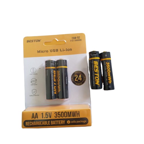 Combo 2 Viên Pin Sạc AA 1.5v Cao Cấp Beston Lithium 3500 MWH Có Cổng Sạc Micro USB - Tặng Kèm Dây Sạc