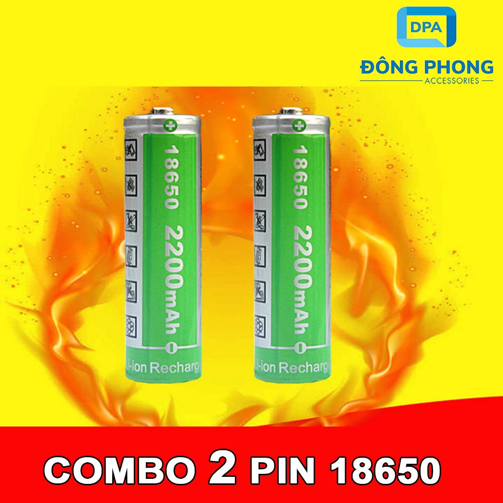 Combo 2 Viên Pin 18650 Lithium-ion 18650 4.2V Dung Lượng 2200mAh- BỘ SẢN PHẨM GỒM 2 VIÊN.