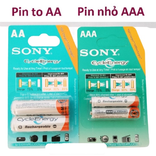 COMBO 2 VIÊN PIN SẠC AAA SONY 1.2V DUNG LƯỢNG 4300MAH SẠC ĐƯỢC 1000 LẦN, PIN TIỂU SẠC 3A DÙNG CHO CÁC THIẾT BỊ ĐIỆN TỬ- Pin AAA là loại pin thông dụng nhất hiện nay, dùng được cho nhiều loại thiết bị điện tử như máy nghe nhạc, máy ảnh, máy Massage chuột không dây, điều khiển , đèn pin, đồ chơi, bộ đàm, các thiết bị đo đạc, đồng hồ, dụng cụ học tập cho trẻ… trong gia đình.