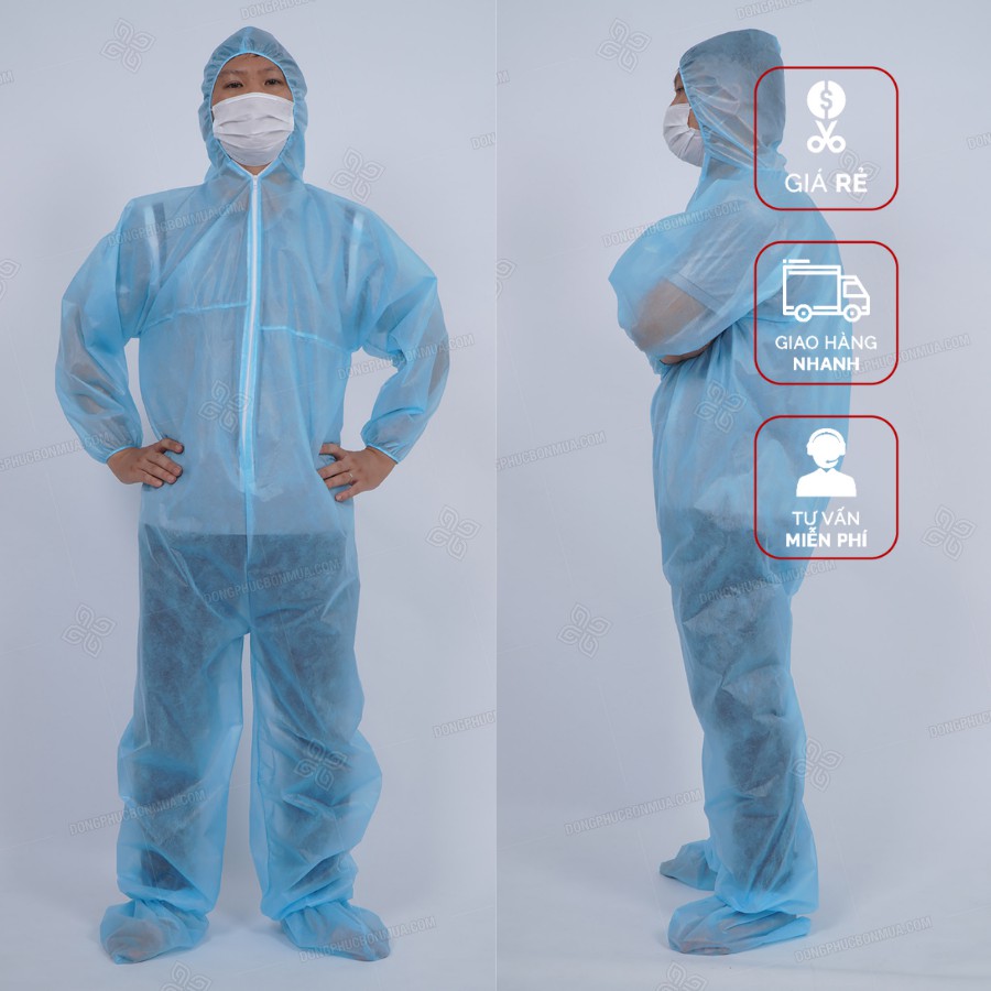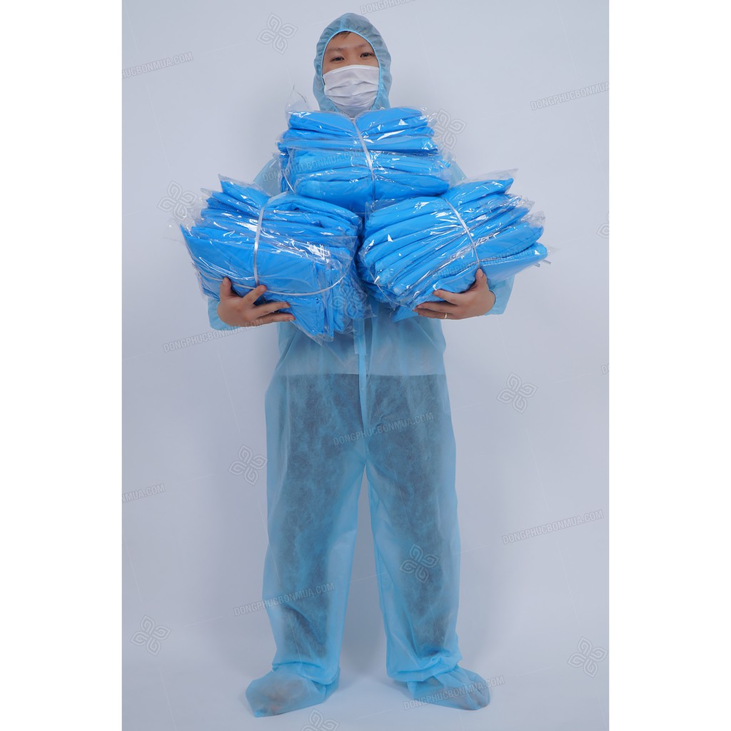 Combo 20 bộ quần áo phòng dịch 4 món CHỐNG NƯỚC,CHỐNG GIỌT BẮN 100% quần áo bảo hộ y tế chống dịch bệnhSET BỘ bảo hộ 4 MÓN GỒM : ÁO,MŨ,QUẦN VÀ BỌC DÀY (MŨ,ÁO MAY LIỀN QUẦN)