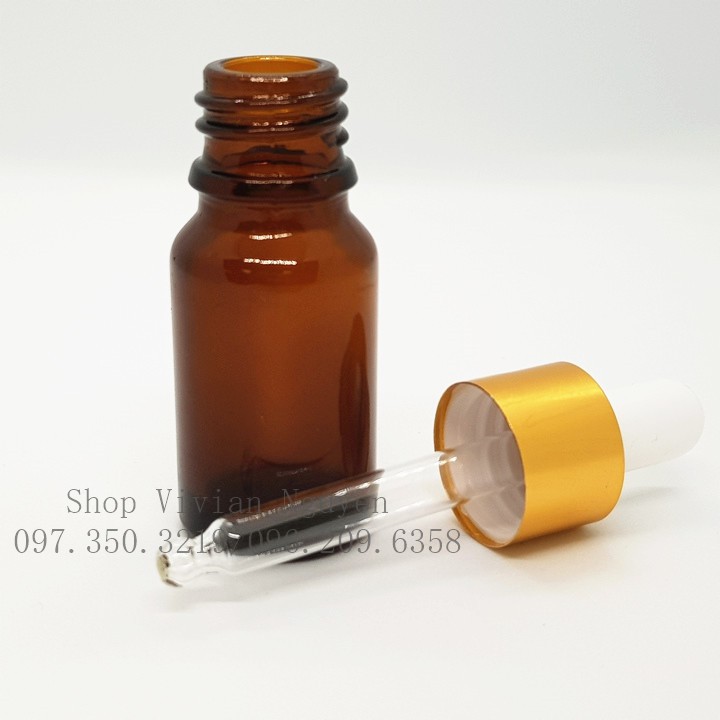 Giới thiệu Combo 20 Chai đựng Tinh Dầu, Serum 10ml Màu Nâu Nắp Bóp Nhôm Vàng