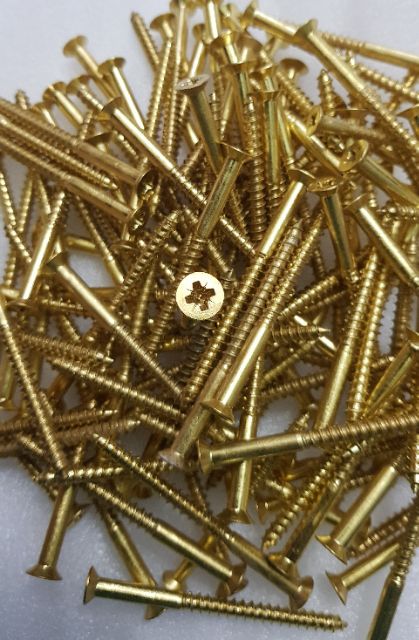 Combo 20 Con Vít đồng thau 6x80mmBộ sản phẩm gồm 20 con vít được sản xuất từ đồng thau nguyên chất, chất lượng cao. Sử dụng để bắt đồ trong phong tắm và các ứng dụng trong ngành gỗ.Chất liêu: 100% đồng thau nguyên chất.